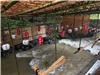 大雨のために川が増水していた。
