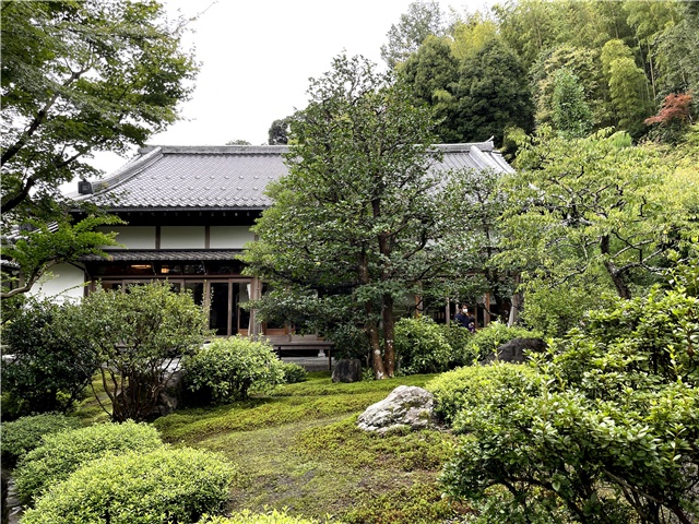 鈴虫寺の庭から見た本堂。