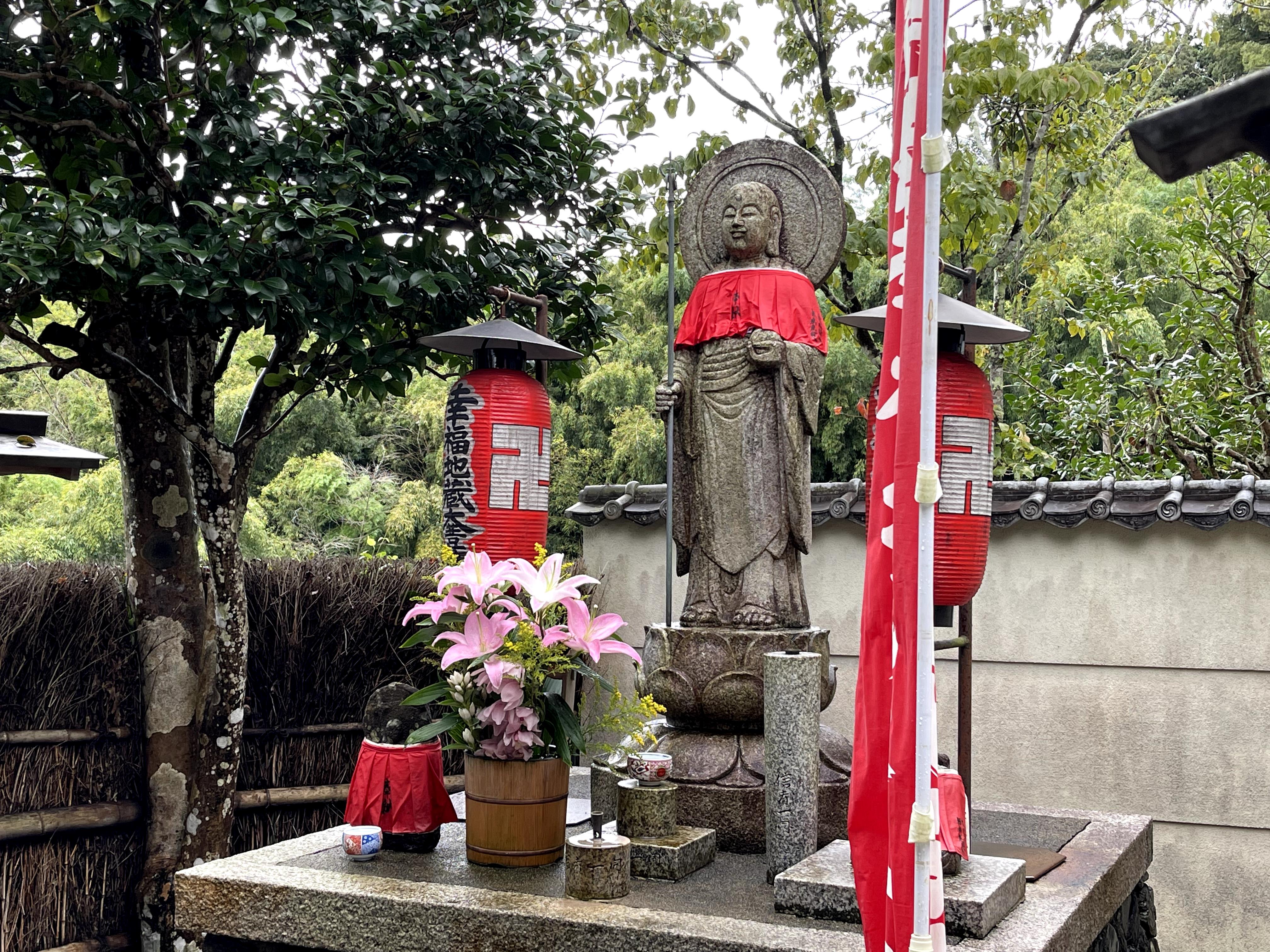 鈴虫寺のわらじを履いたお地蔵さま。