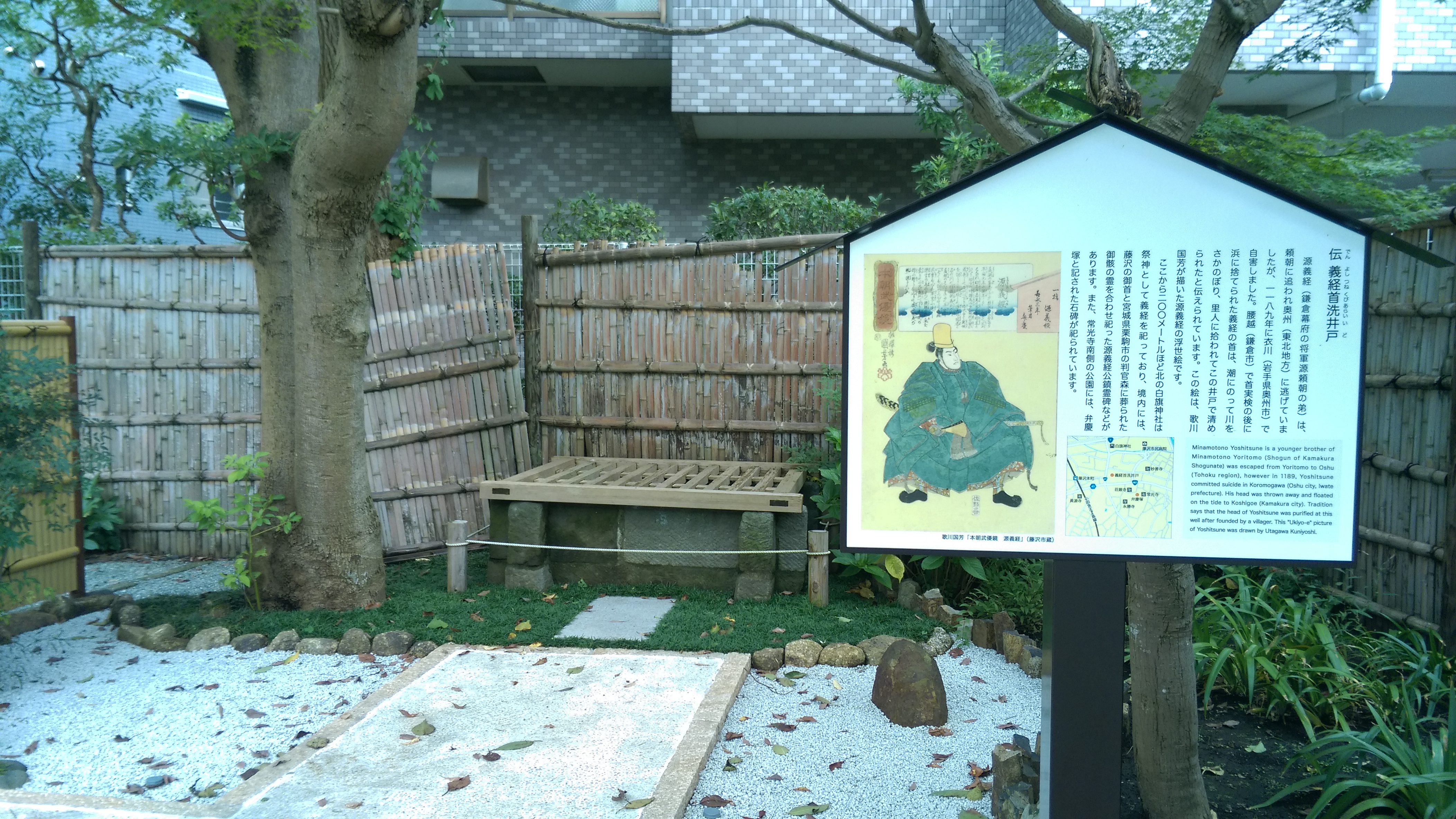 潮にのって境川をさかのぼり白旗神社付近に漂着し た義経の首を里人がすくいあげ、この井戸で洗い清めたということです。