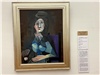 小さな丸帽子を被って座る女性